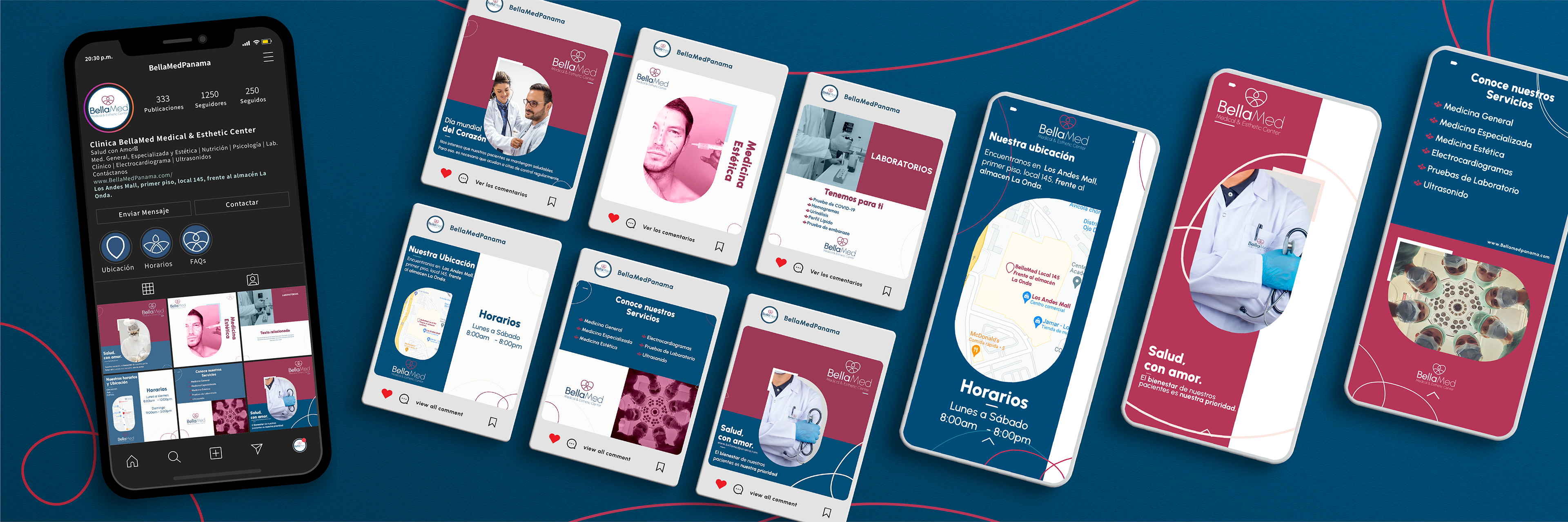 Clínica BellaMed ubicada en Los Andes Mall, con varias áreas para sus clientes y pacientes. Misión: Creación de contenido para redes sociales, campañas publicitarias y manejo de marca.